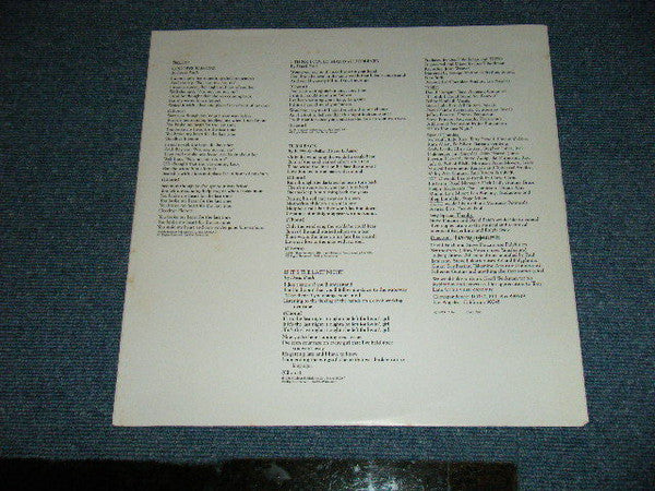 ℗&©1981 CBS, Inc.Issued with obi, japanese insert (liner notes, discography & lyrics), printed inner sleeve with English lyrics, and 11" x 22" folded poster.