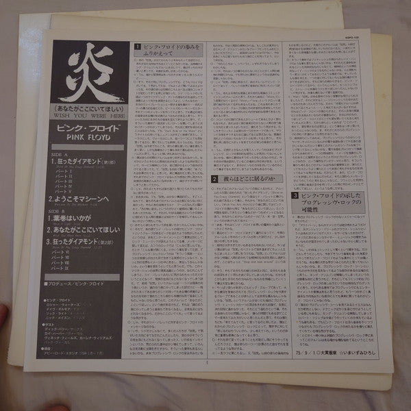 Pink Floyd - Wish You Were Here = 炎 (あなたがここにいてほしい) (LP, Album) - Very Good Plus (VG+) / Very Good (VG)