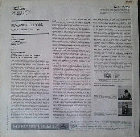 Clifford Brown - Remember Clifford (LP, Compilation, Mono) - Very Good (VG) / Good Plus (G+)