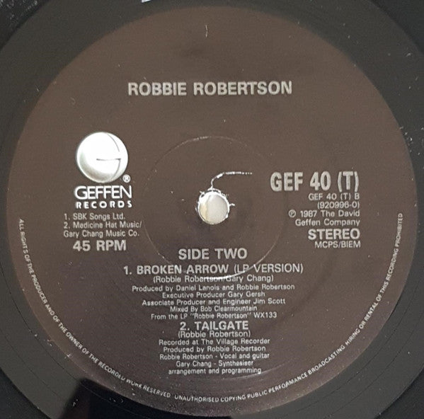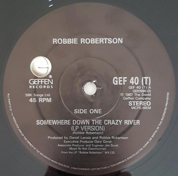 Robbie Robertson - Somewhere Down The Crazy River (12", 45 RPM, Single, Stereo) - Very Good Plus (VG+) / Very Good Plus (VG+)