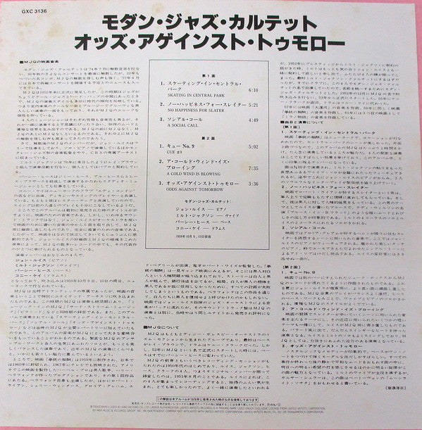 The Modern Jazz Quartet - Music From "Odds Against Tomorrow" (LP, Album, Reissue, Stereo) - Very Good Plus (VG+) / Very Good (VG)