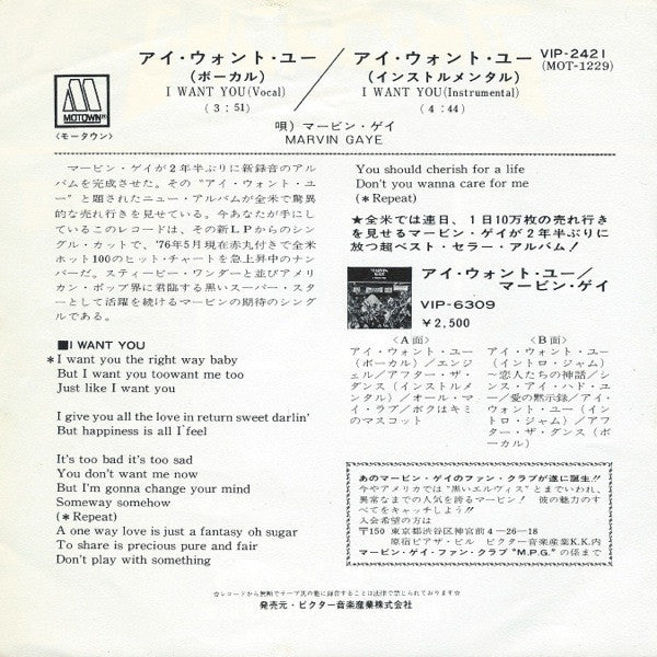 Marvin Gaye - I Want You = アイ・ウォント・ユー (7", 45 RPM, Single) - Very Good (VG) / Very Good (VG)