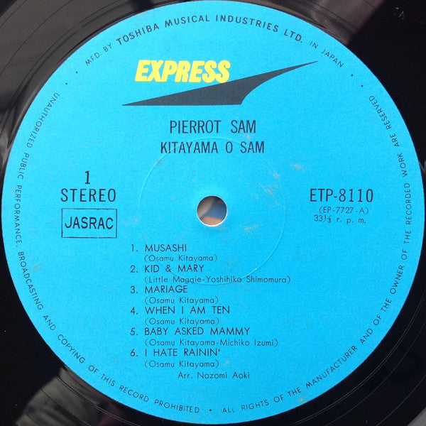 Osamu Kitayama - Pierrot Sam = ピエロのサム (LP, Reissue, Stereo) - Very Good (VG) / Good Plus (G+)