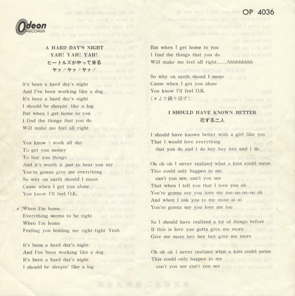 The Beatles - A Hard Day's Night (7", 33 ⅓ RPM, Stereo) - Good Plus (G+) / Good Plus (G+)