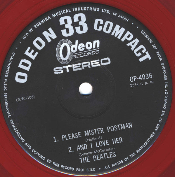 This is a red wax vinyl called "AKA-BAN" in Japan. A black wax vinyl release exists also.The words: Toshiba ongaku kogyo kabusikigaisya / MFD.BY TOSHIBA MUSICAL INDUSTRIES LTD. IN JAPAN