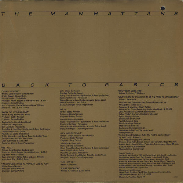 Manhattans - Back To Basics (LP, Album) - Good Plus (G+) / Fair (F)