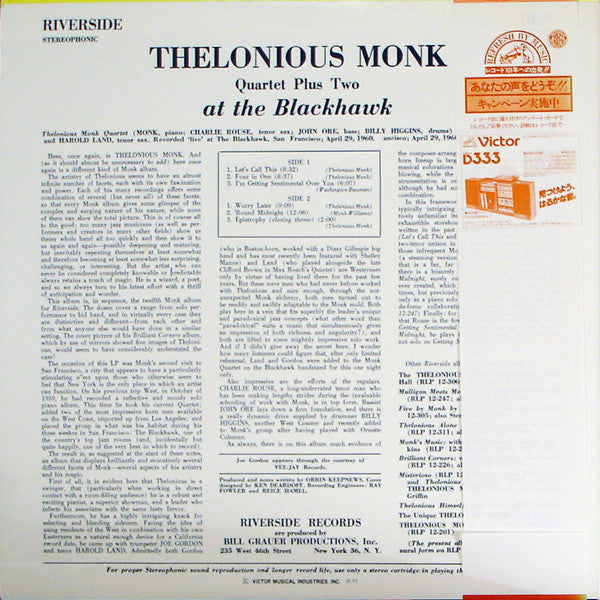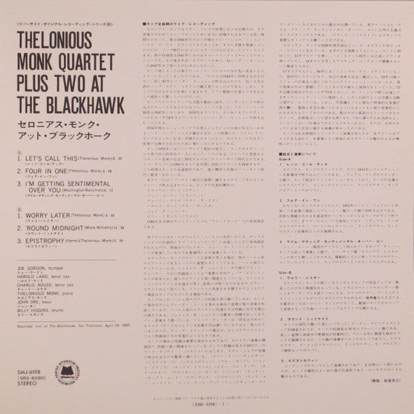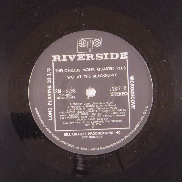 The Thelonious Monk Quartet - At The Blackhawk (LP, Album, Reissue, Stereo) - Very Good Plus (VG+) / Very Good (VG)
