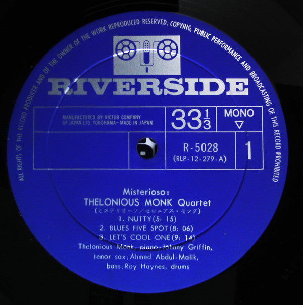 The Thelonious Monk Quartet - Misterioso (LP, Mono) - Very Good Plus (VG+) / Very Good Plus (VG+)
