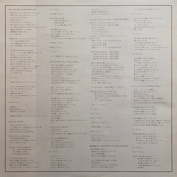 With Obi and two lyric / info inserts (1 single sided, the other 4 pages, 5 pages in total). Some copies contain a Japanese feedback sheet.
