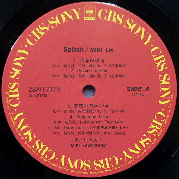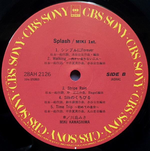 Miki Kawashima - Splash (Vinyl, LP, Album) Very Good Plus (VG+) / Very Good (VG)