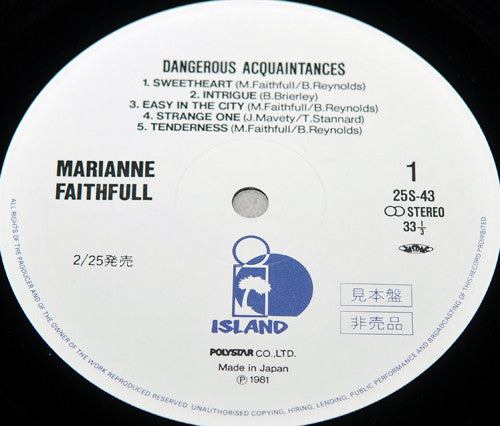 Marianne Faithfull - Dangerous Acquaintances (Vinyl, LP, Album, Promo) Very Good Plus (VG+) / Very Good Plus (VG+)