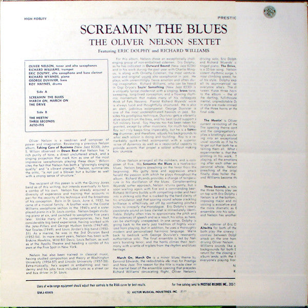 The Oliver Nelson Sextet - Screamin' The Blues (LP, Album, Stereo, Reissue, Promo) - Very Good Plus (VG+) / Very Good (VG)