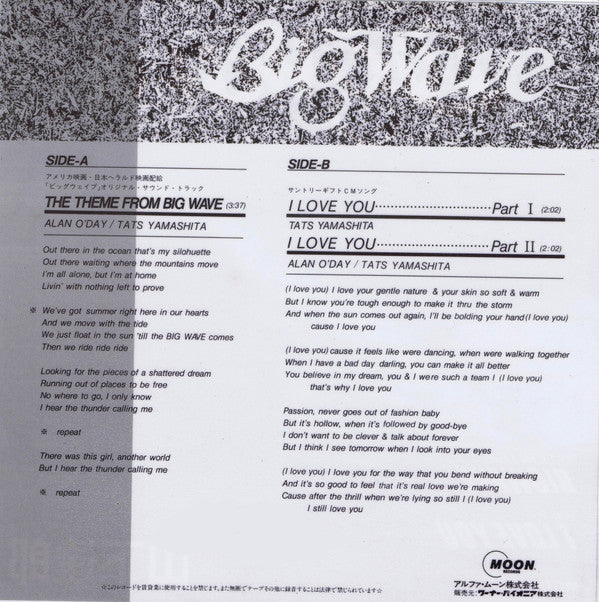 Tatsuro Yamashita - Big Wave (7", 45 RPM, Single, Stereo) - Very Good Plus (VG+) / Very Good (VG)