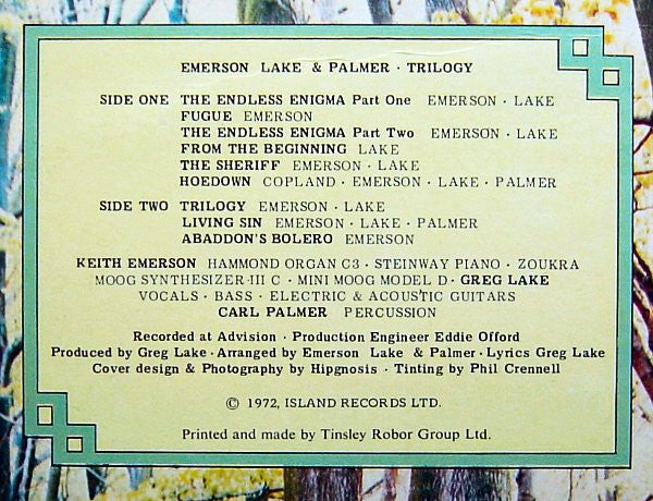 Emerson, Lake & Palmer - Trilogy (Vinyl, LP, Album, Stereo) Good Plus (G+) / Poor (P)