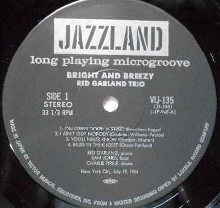 The Red Garland Trio - Bright And Breezy (LP, Album, Reissue, Stereo) - Very Good Plus (VG+) / Very Good (VG)