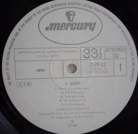 The Boomtown Rats - V Deep (LP, Album, Promo) - Very Good (VG) / Very Good Plus (VG+)