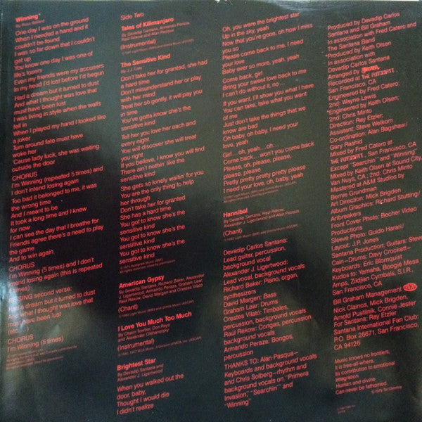 Produced by Devadip Carlos Santana and Bill Graham in association with Gred Catero and The Santana Band, except A3, A4 and A6 produced by Keith Olsen in association with Devadip Carlos Santana.