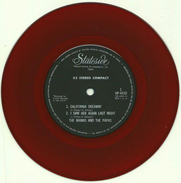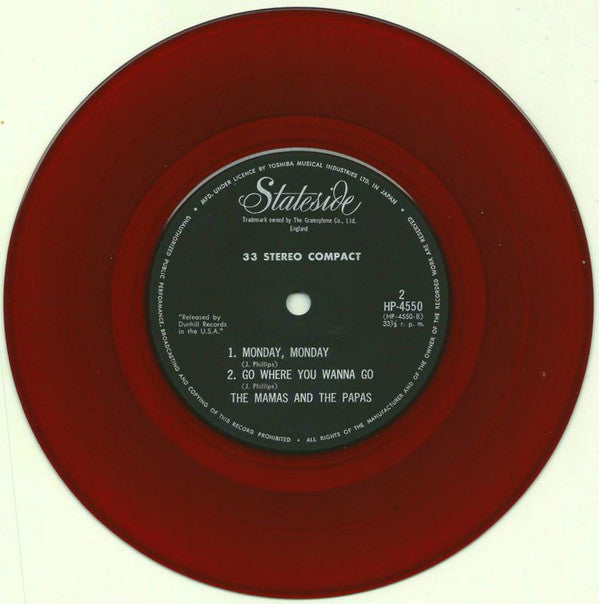 The Mamas & The Papas - 夢のカリフォルニア (California Dreamin') / アイソーハー・アゲイン (I Saw Her Again Last Night) / マンデーマンデー (Monday, Monday) / 青空を探せ (Go Where You Wanna Go) (7", 33 ⅓ RPM, EP, Stereo) - Very Good Plus (VG+) / Very Good Plus (VG+)