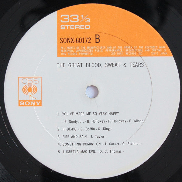 Blood, Sweat And Tears - The Great (LP, Compilation, Stereo) - Very Good Plus (VG+) / Very Good (VG)