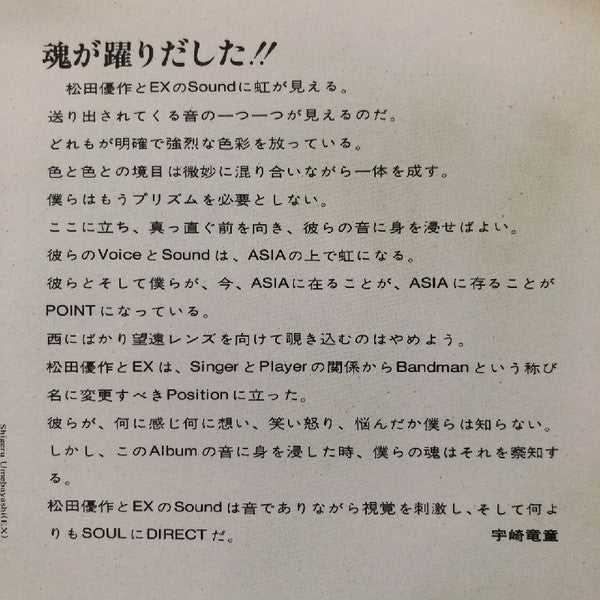 With obi & insert.Obi attachd by sticky tape on sleeve.A barcord sticker on sleeve,and a sticky tape inside sleeve.Seam split on the top on sleeve.Vinyl has some lines,but plays through well.Ask for photos.