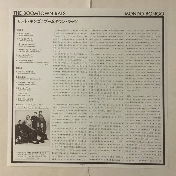 The Boomtown Rats - Mondo Bongo (LP, Album, Promo) - Very Good Plus (VG+) / Very Good Plus (VG+)