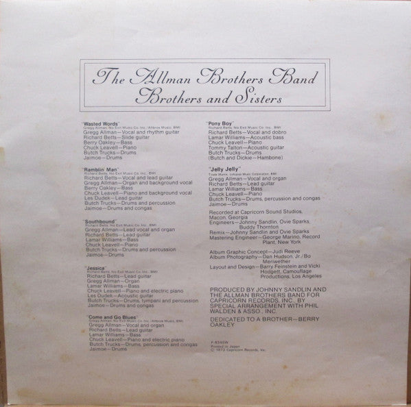 Recorded at Capricorn Sound Studios, Macon, Georgia.