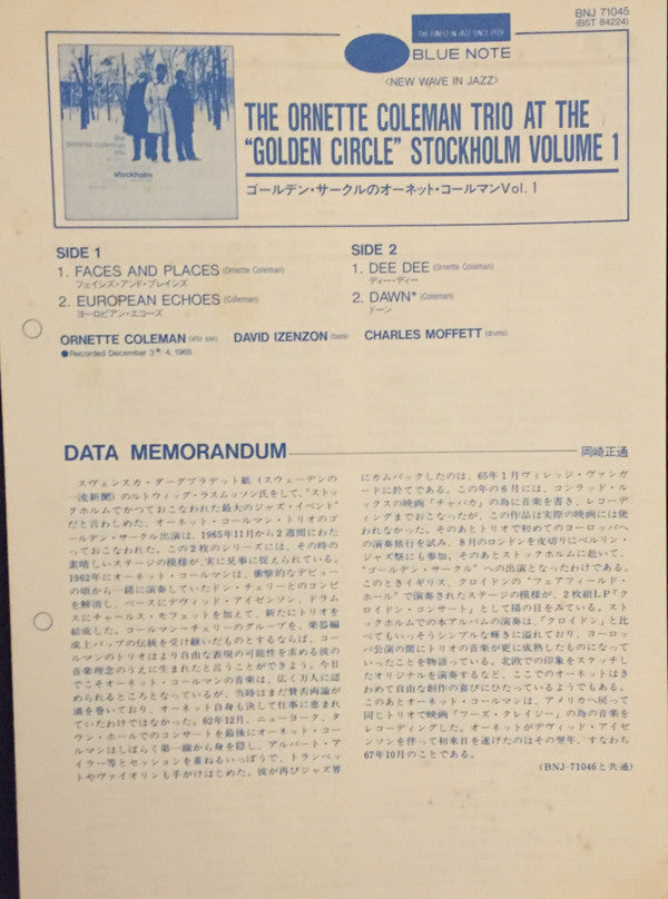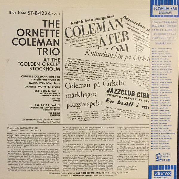 The Ornette Coleman Trio - At The "Golden Circle" Stockholm - Volume One (LP, Album, Reissue, Stereo) - Near Mint (NM or M-) / Very Good Plus (VG+)