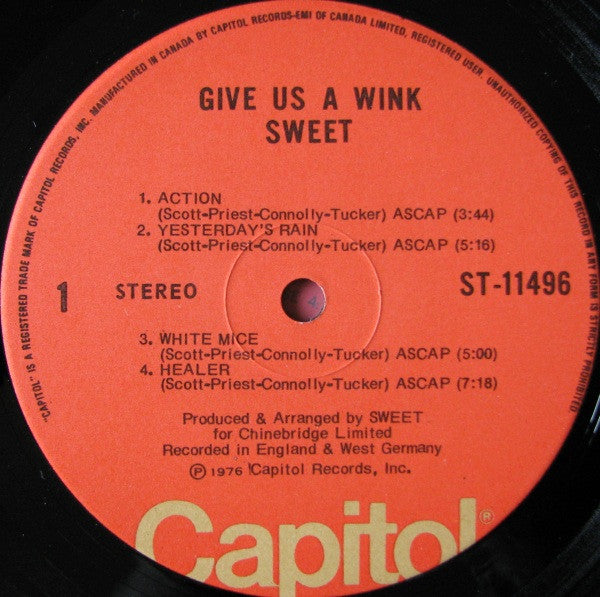 The Sweet - Give Us A Wink (LP, Album) - Good Plus (G+) / Very Good (VG)