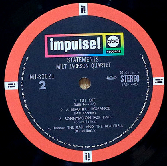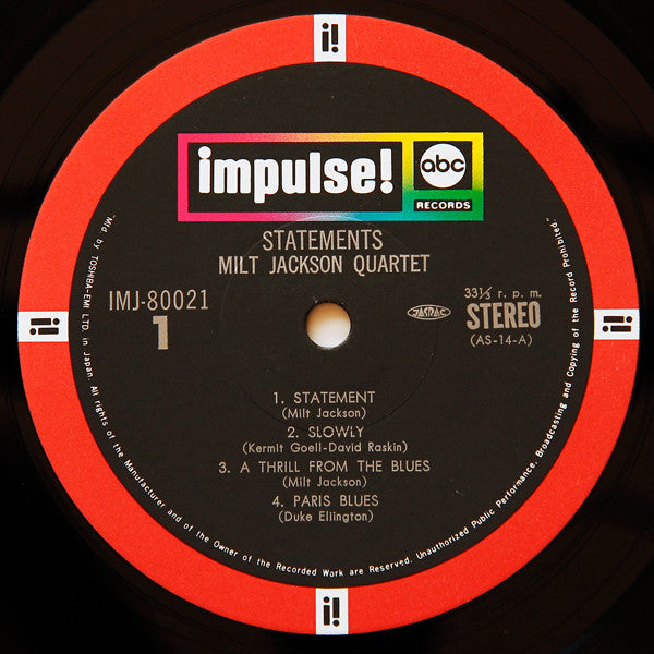 The Milt Jackson Quartet - Statements (LP, Album, Reissue, Stereo) - Very Good (VG) / Very Good (VG)