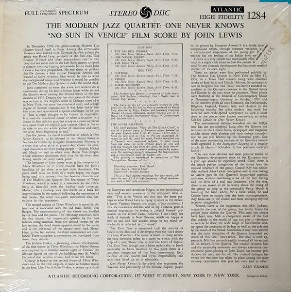 Title | The Modern Jazz Quartet Plays One Never Knows (Original Film Score For “No Sun In Venice”) |