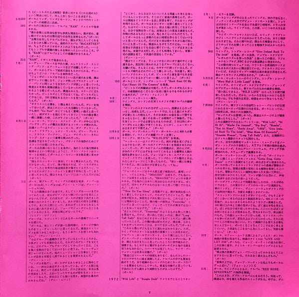 One in English (with pictures and credits) - One (black and pink with notes, translations and chronological biography of McCartney) in Japanese (both 12 pages).