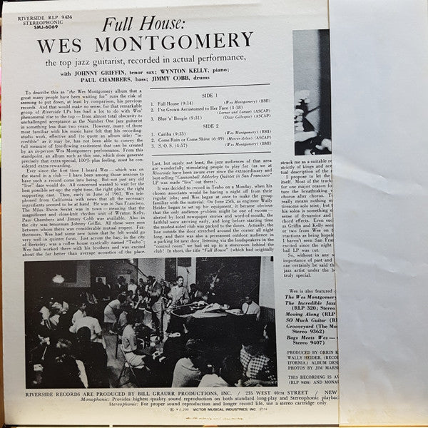 Wes Montgomery - Full House (LP, Album, Reissue, Stereo) - Near Mint (NM or M-) / Very Good Plus (VG+)