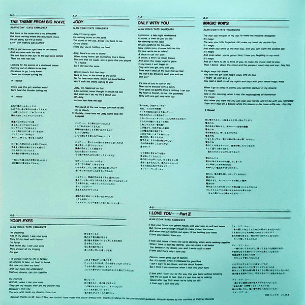 Special Thanks to Mr. Alan O'Day, we couldn't have made this album without him. Thanks to Mariya for her pronunciation guidance. Hiroyuki Namba by the courtesy of RVC/Air Records.