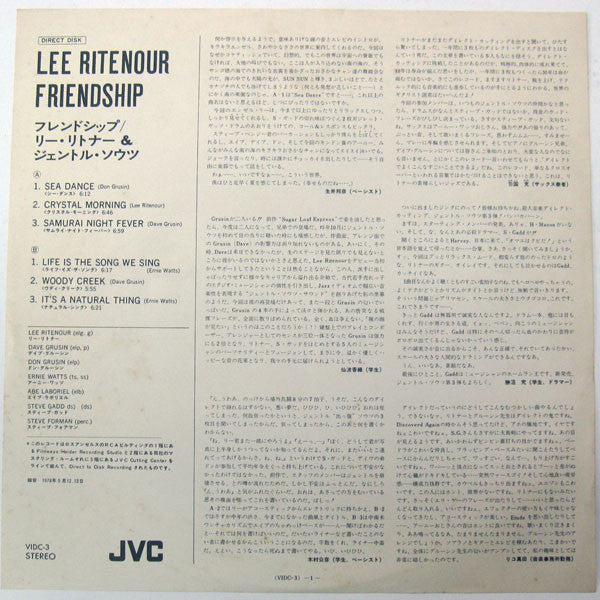 Lee Ritenour - Friendship (LP, Album, Stereo) - Very Good Plus (VG+) / Very Good Plus (VG+)