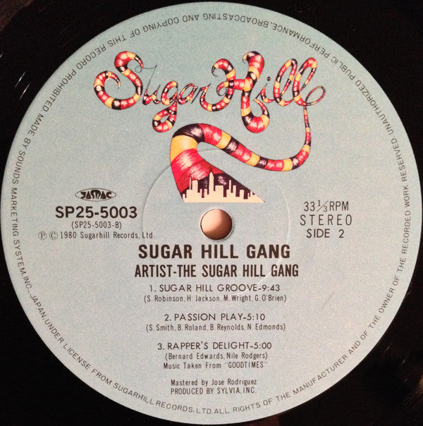 Labels show "Artist: The Sugar Hill Gang" and the title as "Sugar Hill Gang".The back cover shows 1979 as the copyright year, however, the labels show 1980.