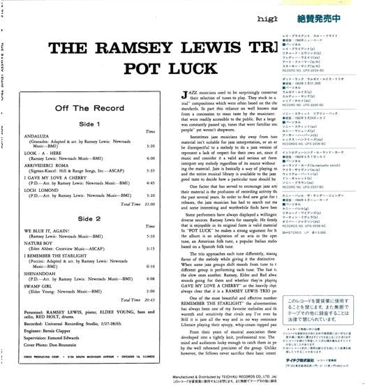 The Ramsey Lewis Trio - Pot Luck (LP, Album, Reissue) - Very Good Plus (VG+) / Very Good Plus (VG+)