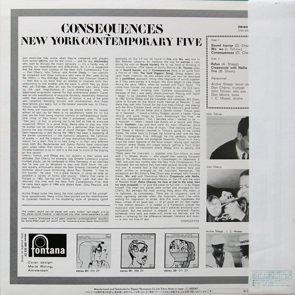 The New York Contemporary Five - Consequences (LP, Album, Reissue) - Near Mint (NM or M-) / Very Good Plus (VG+)