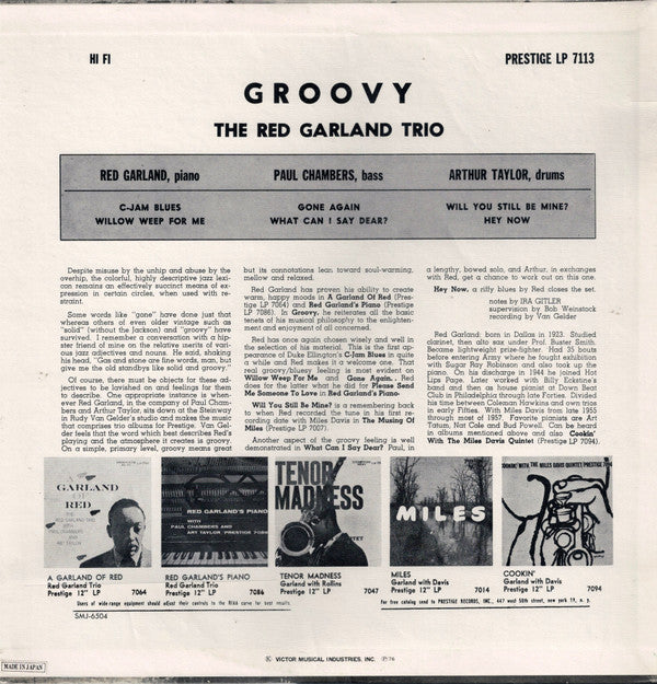 The Red Garland Trio - Groovy (LP, Album, Reissue, Mono) - Very Good Plus (VG+) / Very Good Plus (VG+)