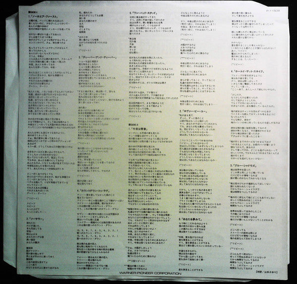 with obi.with insert.The disc has some cloudy spots, but is in very good condition with no noticeable scratches or hairlines. The jacket is shrink-wrapped and has some nicks on each edge and corner.