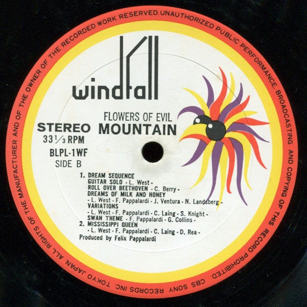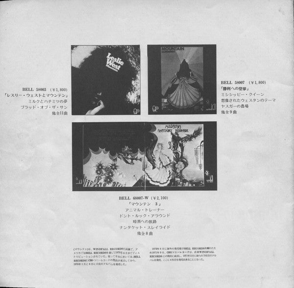 Japan 1st release from Feb 1972Comes in gatefold sleeve with an obi and a 16 page booklet with Japan only liner notes, many monochrome photos, illustrations, English and Japanese lyrics and Mountain discography.