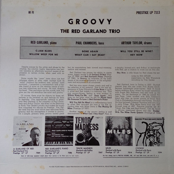 The Red Garland Trio - Groovy (LP, Album, Reissue, Mono) - Very Good (VG) / Very Good Plus (VG+)