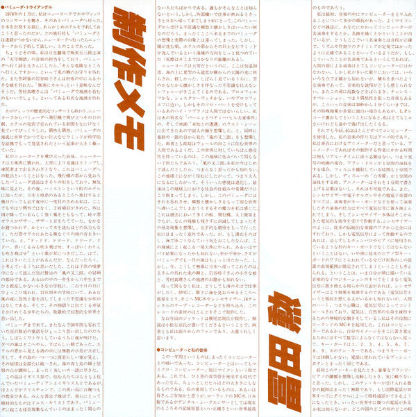 With Gate-Fold Insert / Banderole / Printed Inner-Sleeve / Even The Inside Of The Cover Is Printed (with a Tomita picture in a corresponding position to the dark figure on the back cover)