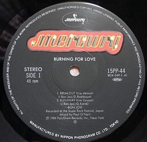 Bon Jovi - Burning For Love (12", 45 RPM) - Very Good (VG) / Very Good Plus (VG+)