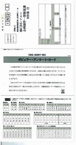 Original release has large CBS/SONY Inc. survey postcard (ポピュラー・アンケート・カード)