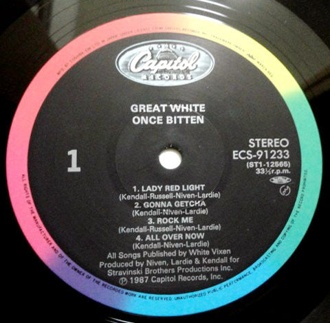 Great White - Once Bitten (LP, Album) - Very Good Plus (VG+) / Near Mint (NM or M-)