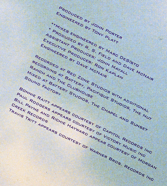 Recorded at Red Zone Studios with additional recordings at Battery, Pacifique Studios, The Nut Ranch and The Clubhouse.Mixed at Battry Studios, The Chapel and Sunset Sound Factory / Manufactured in the EEC.