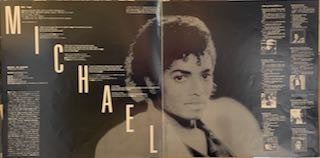 No co-production credit for MJ on rear of sleeve (see here for version with credit: [r=593997])Issued with obi in gatefold sleeve with 2 inserts: a glossy 10-page fold out booklet + single-page double-sided black and white Japanese information sheet. Last 4 pages of the 10-page booklet fold out into a double-sided poster of MJ (standing in purple tracksuit/reclining in white suit with tiger cub).