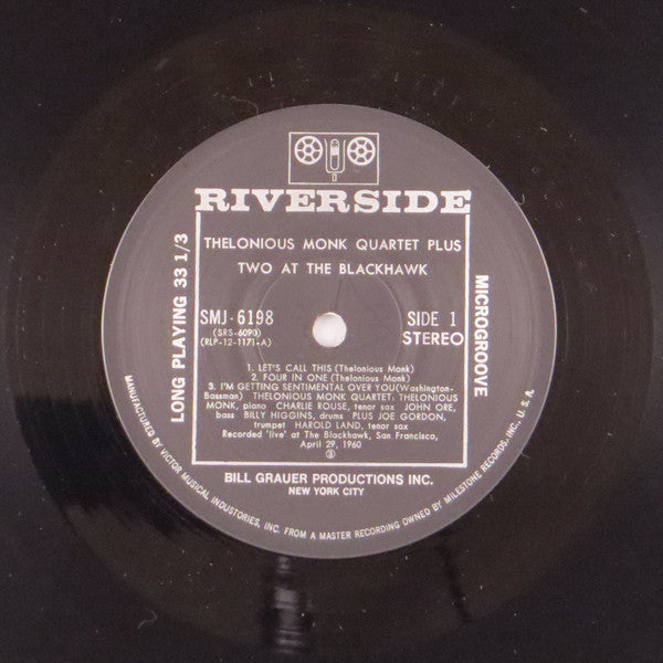 The Thelonious Monk Quartet - At The Blackhawk (LP, Album, Reissue, Stereo) - Very Good Plus (VG+) / Very Good (VG)