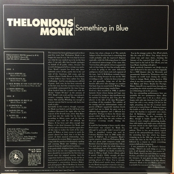 Thelonious Monk - Something In Blue (LP, Album, Reissue, Stereo) - Very Good (VG) / Very Good Plus (VG+)