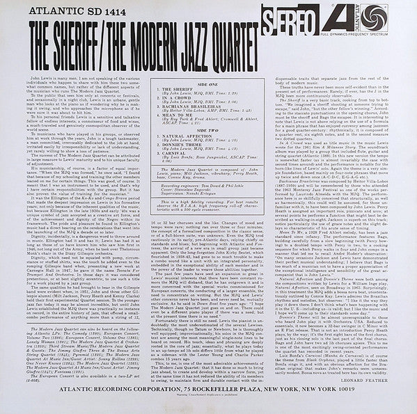 The Modern Jazz Quartet - The Sheriff (LP, Album, Reissue) - Near Mint (NM or M-) / Very Good Plus (VG+)